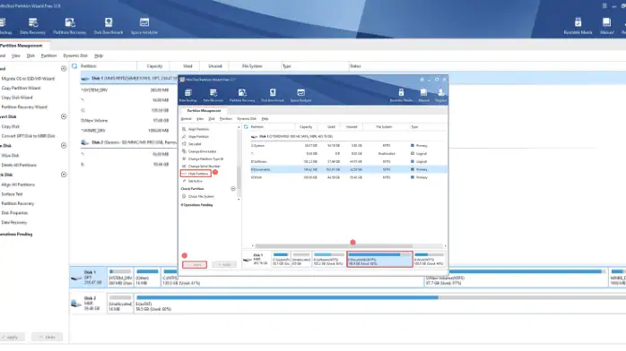 - اسحب حرف محرك الأقراص Partition Wizard الخاص بالقسم.