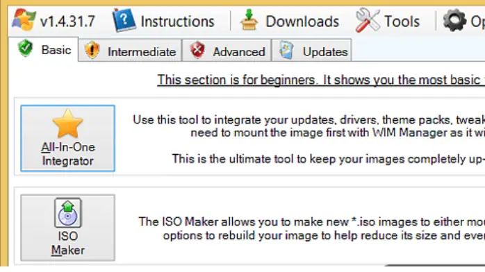 • أداة إنشاء الأقراص الشاملة: تتيح لك هذه الأداة دمج جميع ملفات WIM على قرص DVD واحد. وهي شائعة الاستخدام لدمج أقراص x86 و x64.